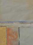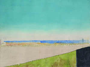 2018Geabstraheerde weergave van een landschap. Collage van acrylverf, gouache en textiel op aquarelpapier.