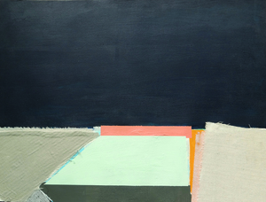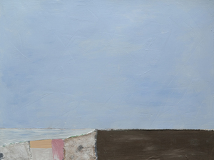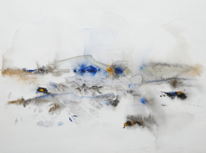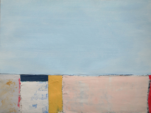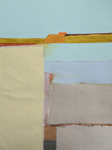 2019Geabstraheerd landschap vervaardigd uit linnen, katoen, acryl- en aquarelverf op aquarelpapier.