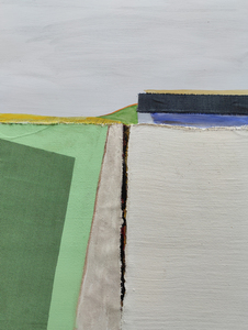 2018Geabstraheerde weergave van een landschap. Collage van acrylverf, gouache en textiel